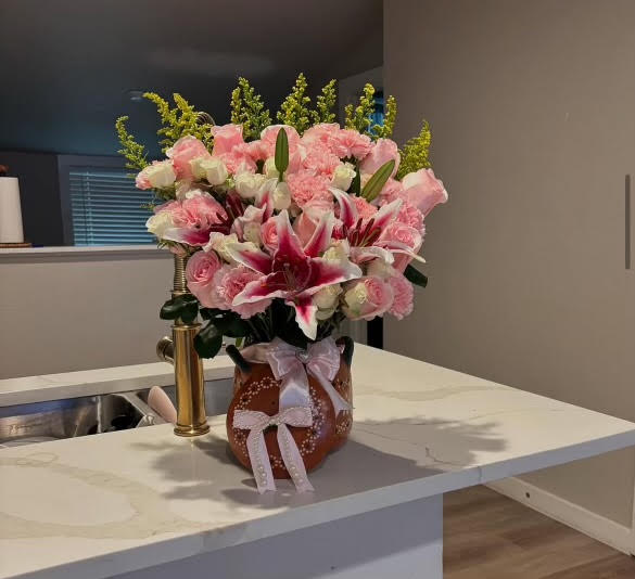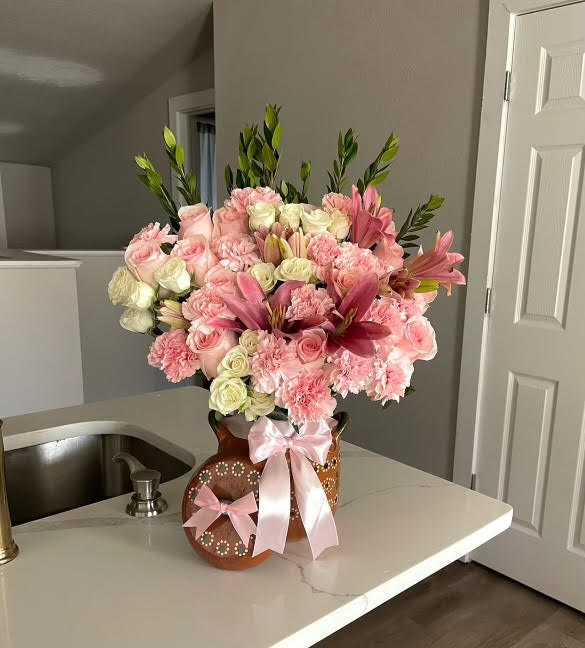 A charming and elegant floral arrangement in a classic barro style, perfect for any occasion. Simple, stylish, and full of fresh blooms, it’s a lovely way to brighten someone’s day.