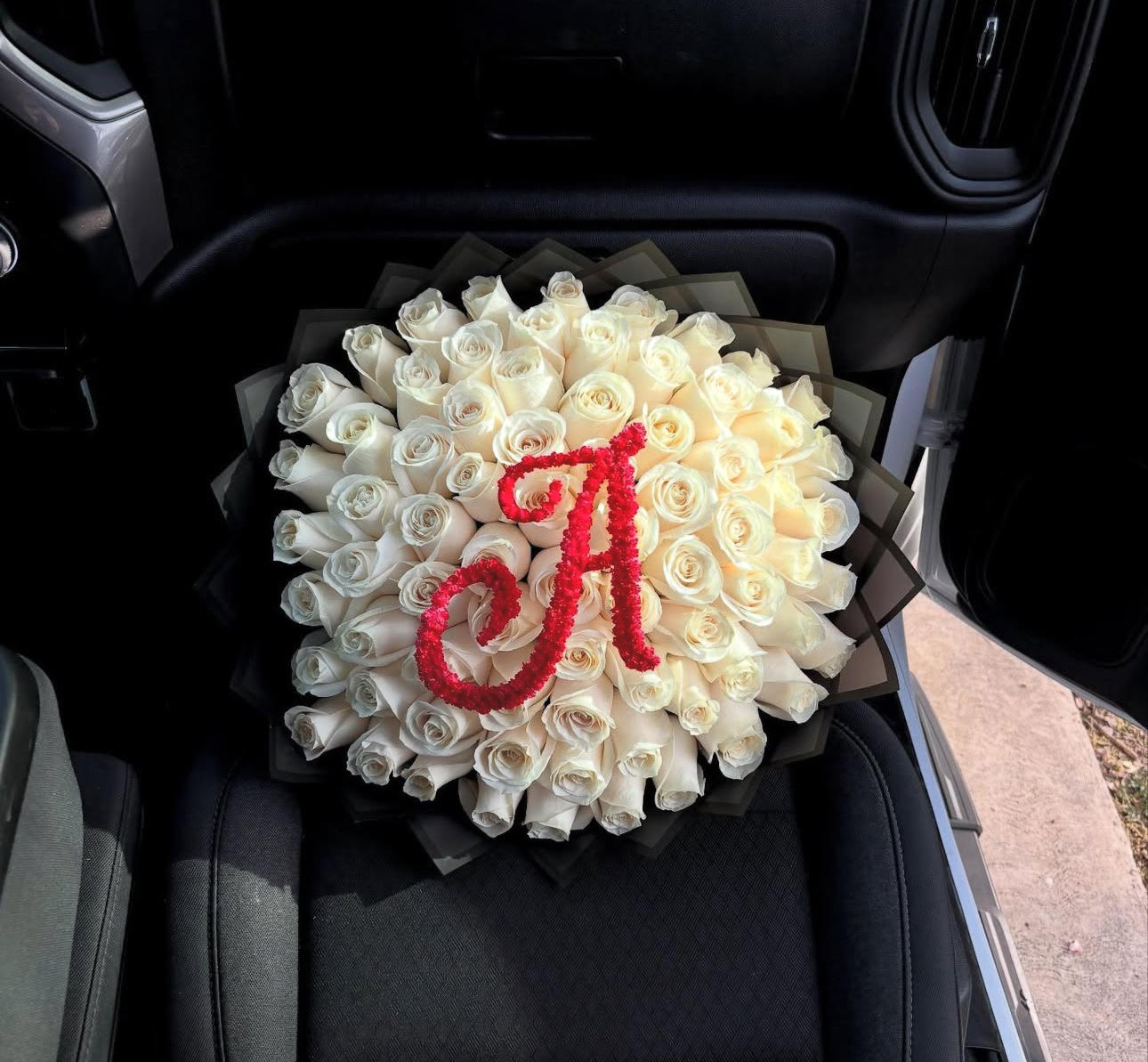 This elegant bouquet of 75 white roses is soft, classic, and beautifully arranged. The standout feature? A custom letter delicately made from baby’s breath. Just add your initial in the box and we’ll personalize it just for you — perfect for names, initials, or romantic surprises.