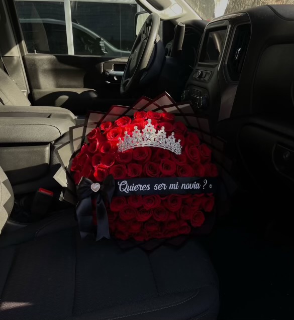 A breathtaking arrangement of 75 vibrant red roses, finished with a luxurious silver crown and a personalized ribbon. The perfect way to celebrate love in style.